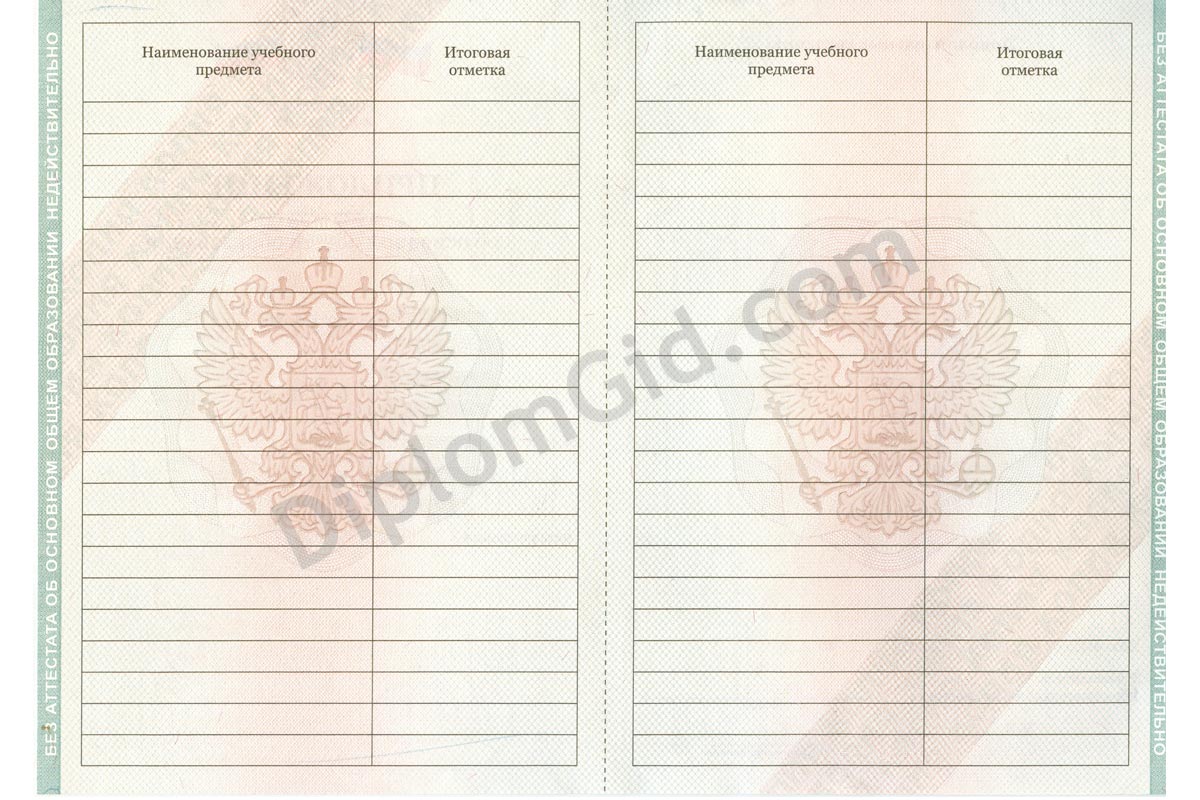Аттестат школы об окончании 9 классов< на государственном бланке ("Гознак" со всеми степенями защиты). Выдача в 2010, 2011, 2012, 2013 годах.